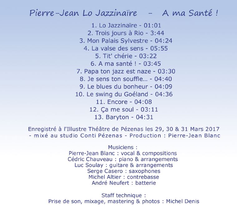 Pierre-Jean Blanc - 01Enregistrement de l’album « A ma santé ! »